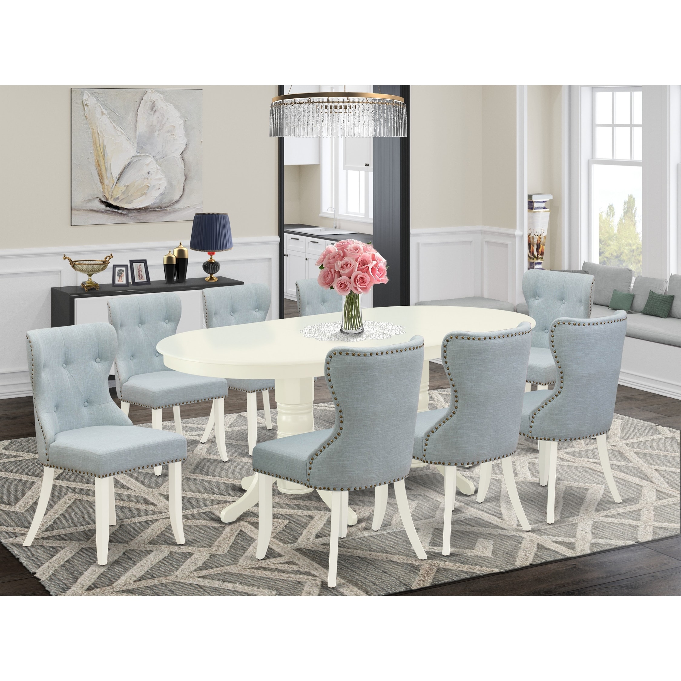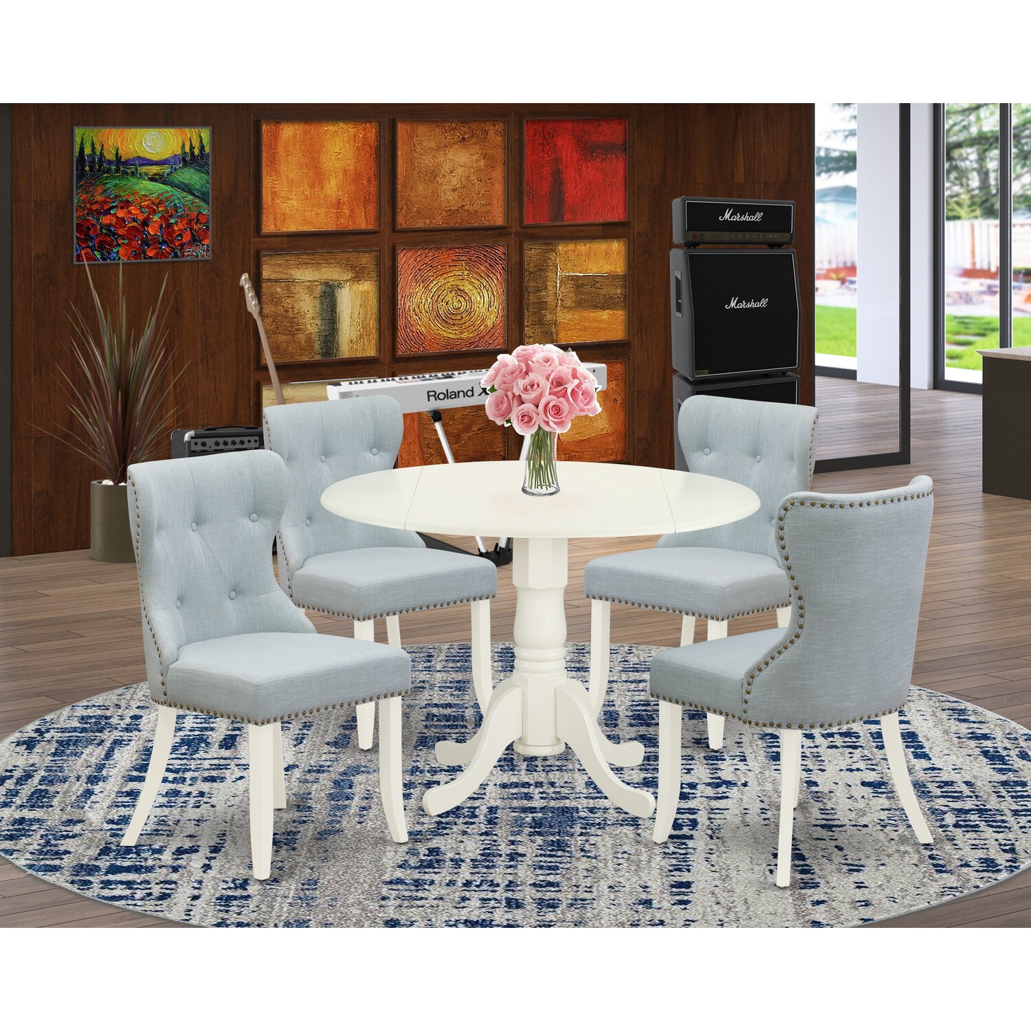 East West Furniture Kitchen Dinette Set 5 Pc Blue Linen Fabric Button Tufted Kitchen Parson Chairs Black Finish Solid Wood Drop Leaves Pedestal Dining Table And Frame Pricepulse from images-na.ssl-images-amazon.com Never use oiled or treated cloths on lacquered finishes. By osp home furnishings (7). We can make you a dining set in any size, shape, style, and color that will coordinate with your requirements. Find furniture & decor you love at hayneedle, where you can buy online while you explore our room designs and curated looks for tips, ideas & inspiration to help you along the way. Dining room table set for 6 farmhouse solid wood kitchen tables and chairs sets. Customization, quality, and service is what separates us from others. A kitchen table set can be the center of style for your kitchen or dining room. Everything from the distinct leg design to the catchy color choice is on point.